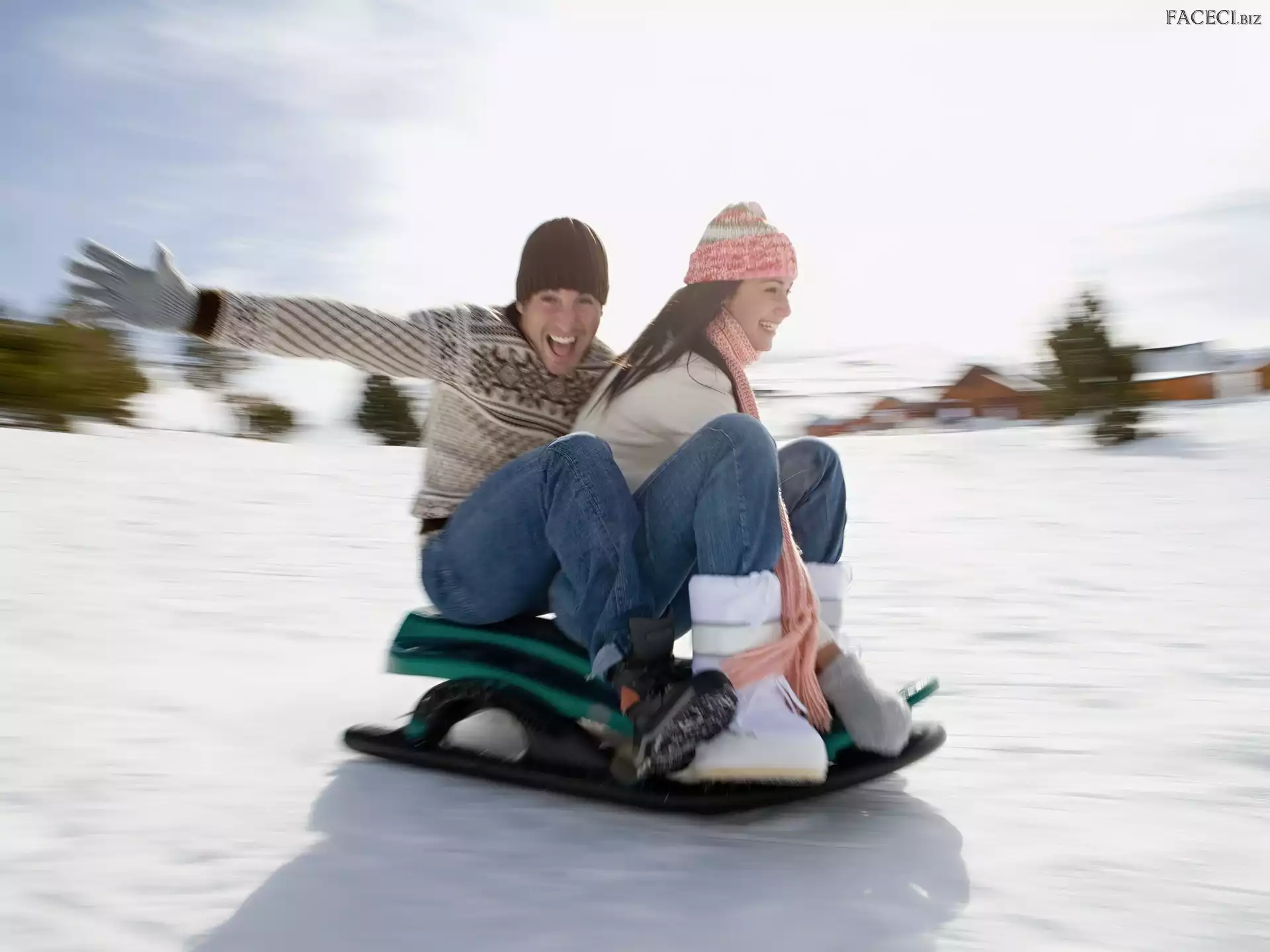 Jazda, Saneczki, Para, Zima, Åšnieg - faceci.biz